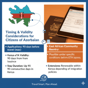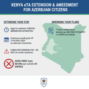 Multiple entry/long-validity eTA: For regular travelers from Azerbaijan, there could be an option of a Kenya eTA with one year validity (though still limited in continuous stay).